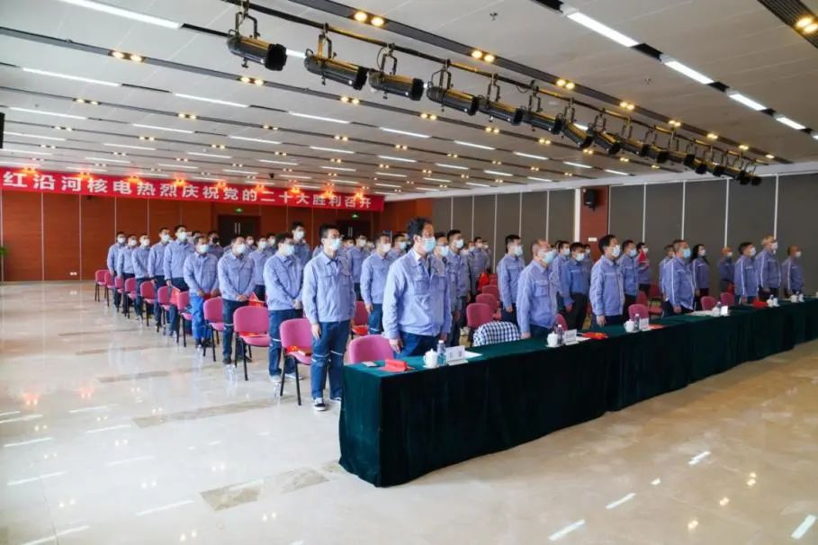 遼寧紅沿河核電有限公司結合工作實際,在保障機組安全生產的前提下,組織廣大干部員工收看黨的二十大開幕直播,共設置21個集中觀看視頻點,近400名黨員集中觀看直播,其余410余名黨員自行收聽收看,第一時間學習習近平總書記重要講話精神。