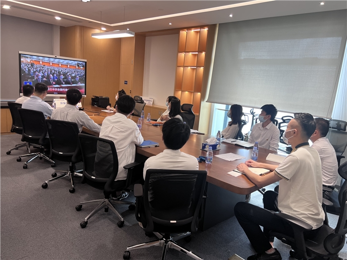 中廣核資本控股有限公司團委組織各團組織和團員青年觀看黨的二十大開幕盛況。