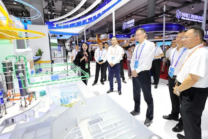 ▲國(guó)家原子能機(jī)構(gòu)副主任劉敬(前排右三)一行參觀(guān)中廣核展臺(tái)