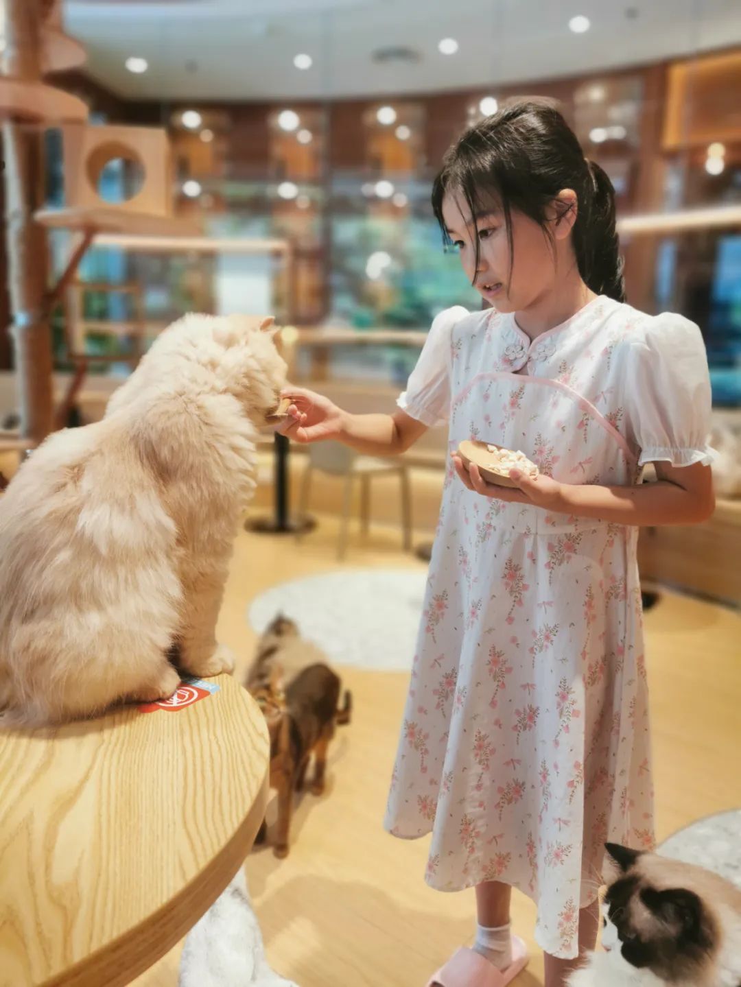 ▲唐雪映與貓咪互動(dòng)