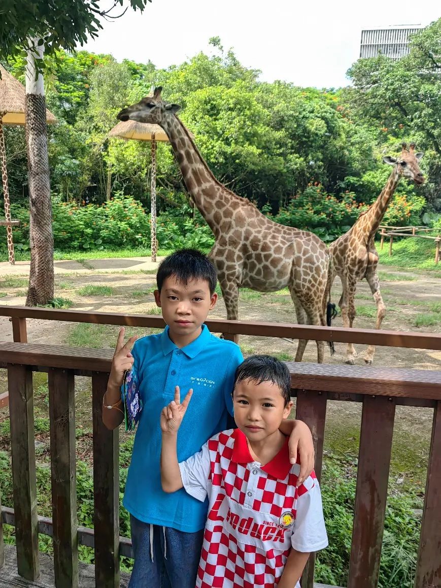 當(dāng)天上午,兩個(gè)小朋友第一次乘坐地鐵來(lái)到了旅程的第一站——深圳野生動(dòng)物園。在從地鐵站到動(dòng)物園的路上,他們看到了各種動(dòng)物石雕,不禁激動(dòng)不已,對(duì)這次動(dòng)物園之旅充滿了期待。進(jìn)入動(dòng)物園后,他們坐上小火車,第一站來(lái)到了長(zhǎng)頸鹿的家園??吹饺齼蓛蓛?yōu)雅踱著步子、撲閃著水汪汪大眼睛的長(zhǎng)頸鹿,兩個(gè)小朋友開(kāi)心極了,并迫不及待地想和它們親密接觸。隨后他們還見(jiàn)到了斑馬、大象、犀牛、熊貓、海豹、鯊魚(yú)、海豚、水母和老虎等各種動(dòng)物。走了1萬(wàn)多步后,兩個(gè)小朋友依然精力充沛、興致勃勃,并且笑容洋溢在曬紅的小臉上,樂(lè)此不疲。