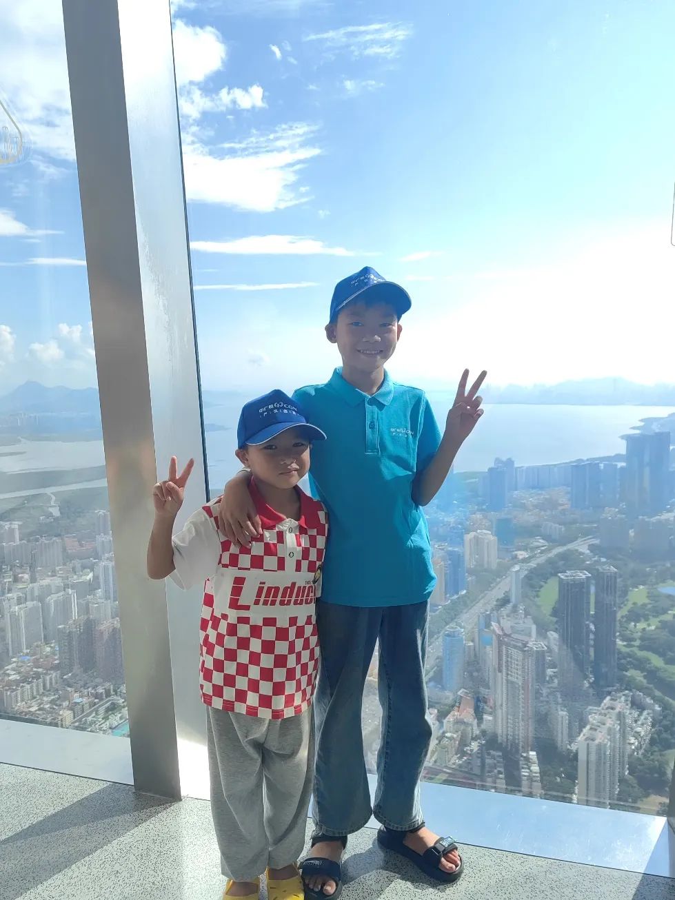 下午,中廣核工程助夢(mèng)團(tuán)帶著小朋友來(lái)到了深圳平安國(guó)際金融中心。首先,他們通過(guò)視頻了解深圳的改革開(kāi)放發(fā)展史,然后乘電梯來(lái)到了高約550米的云頂層。從那里,他們俯瞰改革開(kāi)放前沿——深圳,并360度領(lǐng)略深圳壯麗的城市風(fēng)光,這給他們帶來(lái)了強(qiáng)烈的視覺(jué)震撼。