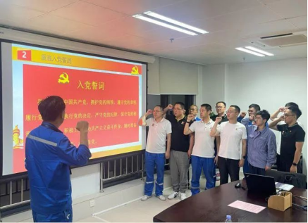 寧德核電運行二部第一黨支部在活動中心黨建陣地開展“重溫入黨誓詞 銘記入黨初心”主題黨日活動。面對黨旗,全體黨員同志在領(lǐng)誓人的帶領(lǐng)下,舉起右拳共同宣誓,再一次用錚錚誓言詮釋入黨初心。
