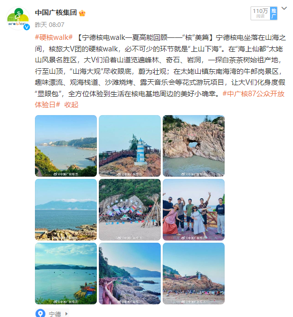8·7到來之際,作為核電工業(yè)旅游的預熱,中廣核還組織開展寧德核電“walk一夏”大V采風活動,共邀請了微博科普、生態(tài)環(huán)境、鄉(xiāng)村振興、旅游、美食、時尚生活垂類領(lǐng)域6位頭部大V,圍繞“核電基地游”“核電周邊游”兩大主題,打卡了寧德核電基地88米觀景平臺、全范圍模擬機、生態(tài)白茶園,及周邊金牌旅游村漁井村、全國小康建設明星村柏洋村、太姥山景區(qū)、牛郎崗景區(qū)等地,全方位感受核旅硬核工業(yè)之美、“核”諧人文之美、“核”美生態(tài)畫卷。微博主話題#硬核walk# 截至目前,話題閱讀量7207.2萬,互動討論量達5.7萬,登上福建熱搜榜第三位。