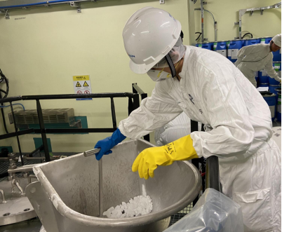▲工作人員正在硼水補(bǔ)給系統(tǒng)中添加硼酸