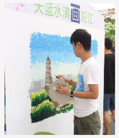 活動邀請了廣州美術(shù)學(xué)院的學(xué)生現(xiàn)場作畫,用水彩描繪陽江的本土特色景色,畫筆下的藍(lán)天、北山石塔、靈芝風(fēng)箏讓市民更直觀的領(lǐng)略到陽江的自然之美